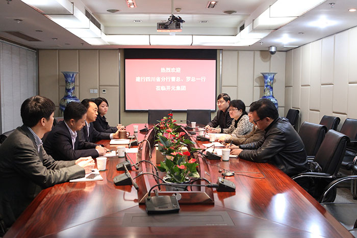 建行四川分行曹行長一行蒞臨開元集團,董事長趙思儉,財務總監杜勇接待到訪領導。雙方主要就各自近期規劃及發展做了親切交談,趙總就對方關心的公司現有生產、經營及發展規劃進行了詳細介紹,趙總說,雖然現在正值行業形勢低迷期,很多企業面臨生死抉擇,但是,開元在這次風浪中所受的沖擊不大,一直穩居競爭力排名前列并持續盈利。公司近年來一直在學習東方希望的管理模式,開展精益化管理,取得了一定成效,但是,過程還很漫長,不管以后經濟、行業形勢如何,我們都將持續不斷地開展下去,精益化管理也將助推集團邁上新臺階。曹總先就集團金融板塊的規模狀況及管理進行了詳細了解,對趙總獨到的投資和管理經驗表示了高度肯定,尤其在老撾開元的鉀鹽生產以及匯力農資重點新產品開發方面表現出了濃厚的興趣。在詳細了解了公司的營銷模式和未來走向后,曹總表示,自07年開始,雙方一致保持著長期友好的合作關系,希望在集團接下來的遠景規劃中,雙方能夠繼續攜手,突破合作范圍,創新合作途徑,以更優的合作方式服務商家,方便客戶。
